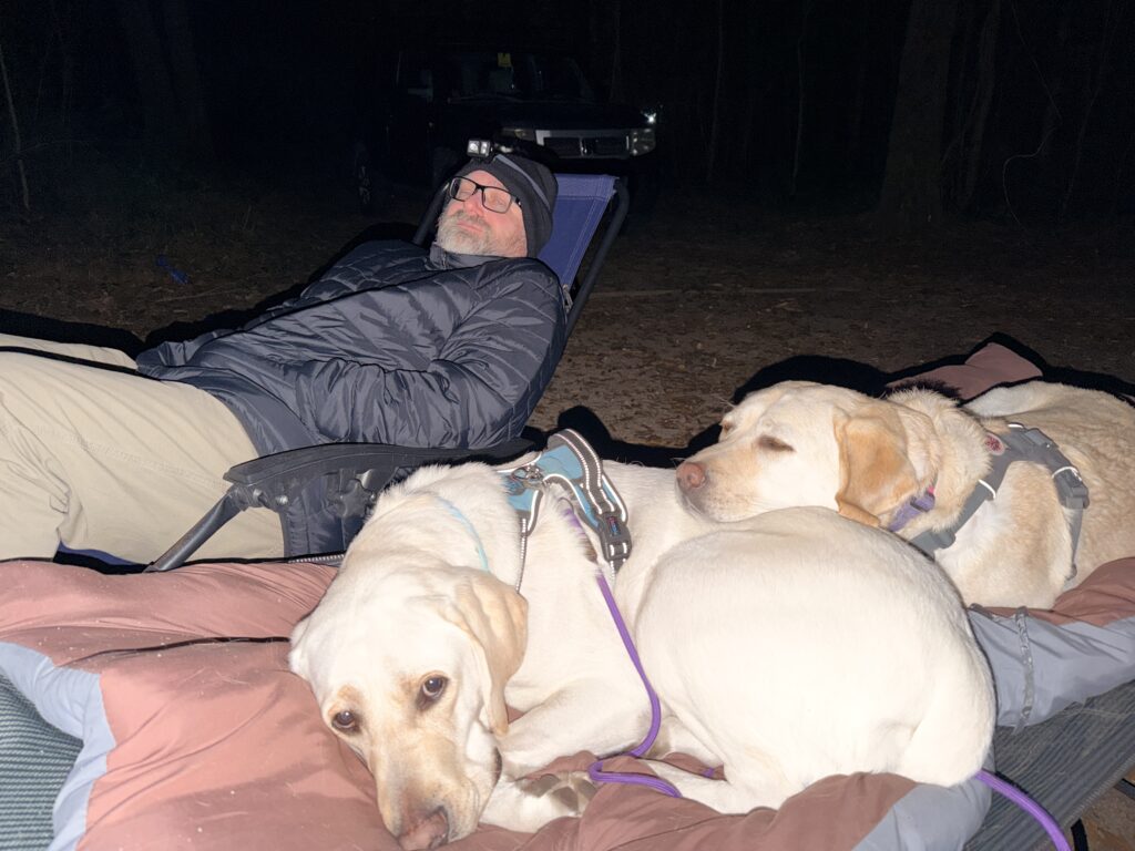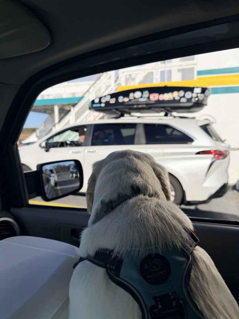 We decided to test out our set up for camping in the van. We were supposed to join up with some friends of ours, but they came down with the flu the night before we left. So, we went anyways. We hopped on the ferry and headed to Carolina Beach State Park. It was a super cold night but we made the best of it. Everything went well. The dogs did great! We did have a visitor in the middle of the night though. It was a raccoon. He pushed our cooler off the picnic table and helped himself to the fruit inside. No biggie. Once we put the cooler in the car, he didn’t come back.