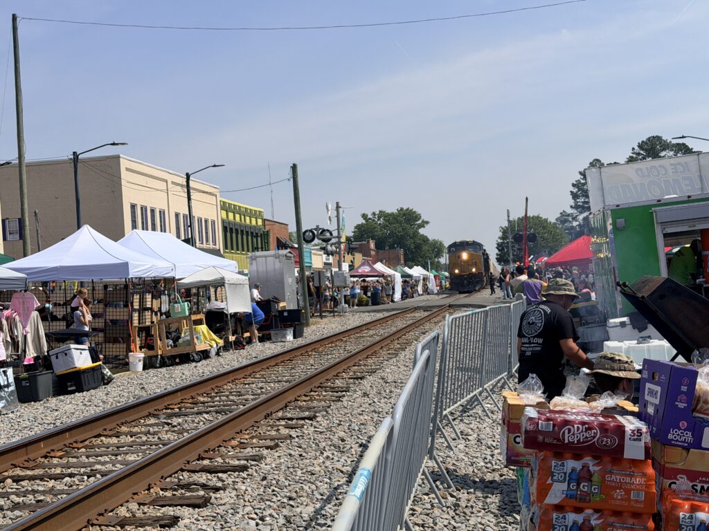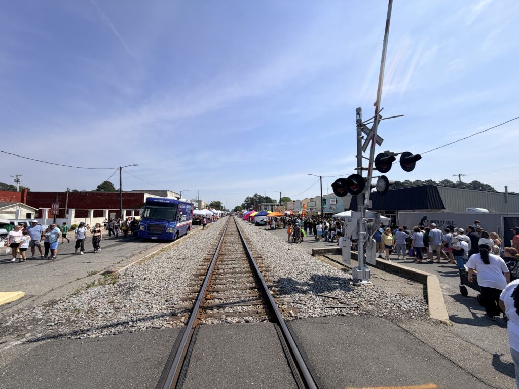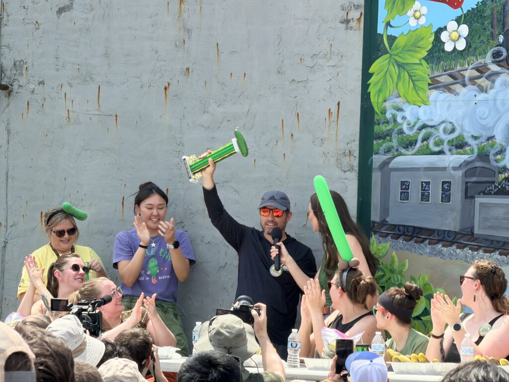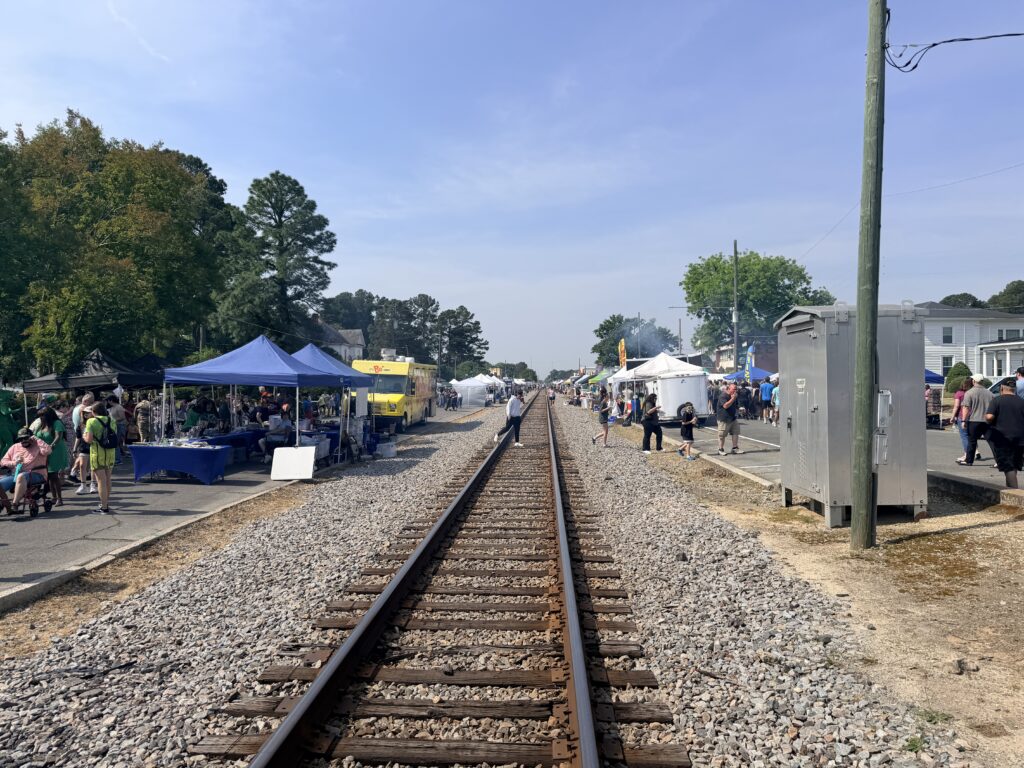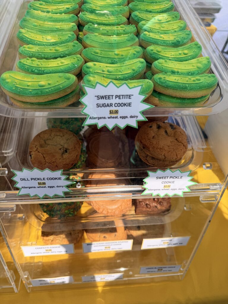 Today, I went with my friend Lecy to the Mount Olive Pickle Festival in Mount Olive, North Carolina. It was the 40th year for the festival and the 100th year for Mount Olive making pickles. I made us fun shirts to wear (which we were complimented on several times) and made a pair of pickle earrings for Lecy. There were a ton of people! Lots of vendors and lots of food/drink options. Every food/drink vendor had to have some kind of pickle option. Mount Olive was handing out free pickles! I did not feel compelled to try most of the pickle options from the vendors, like pickle lemonade, pickle cookies, or chocolate covered pickles, but we did try the dill pickle fudge. Surprisingly, it was not terrible. We watched the pickle eating competition where the contestants had 5 minutes to eat as many of the 20 pickles as they could. They were the great big pickles! The winner ate 11 pickles! We did not tour the After spending a couple of hours walking around the festival, we decided to have lunch outside of the festival to avoid some of the crowd and seek shade. I had so much fun hanging out with Lecy for the day.