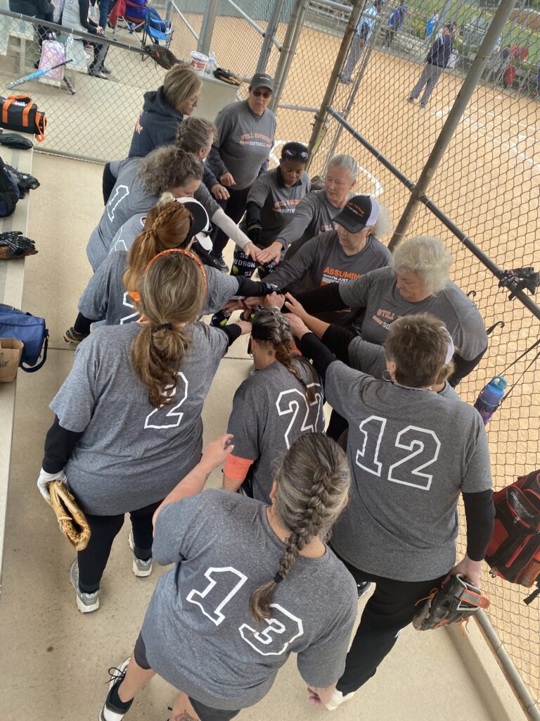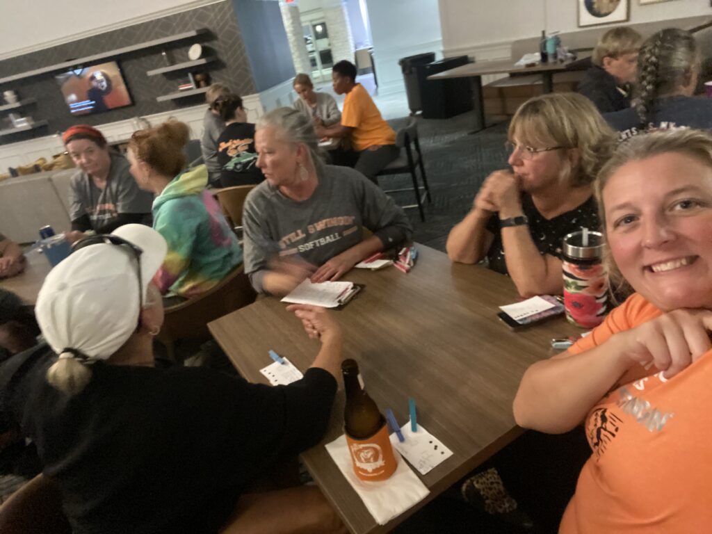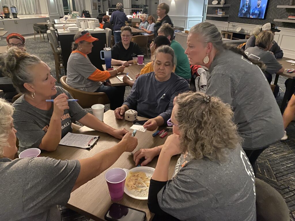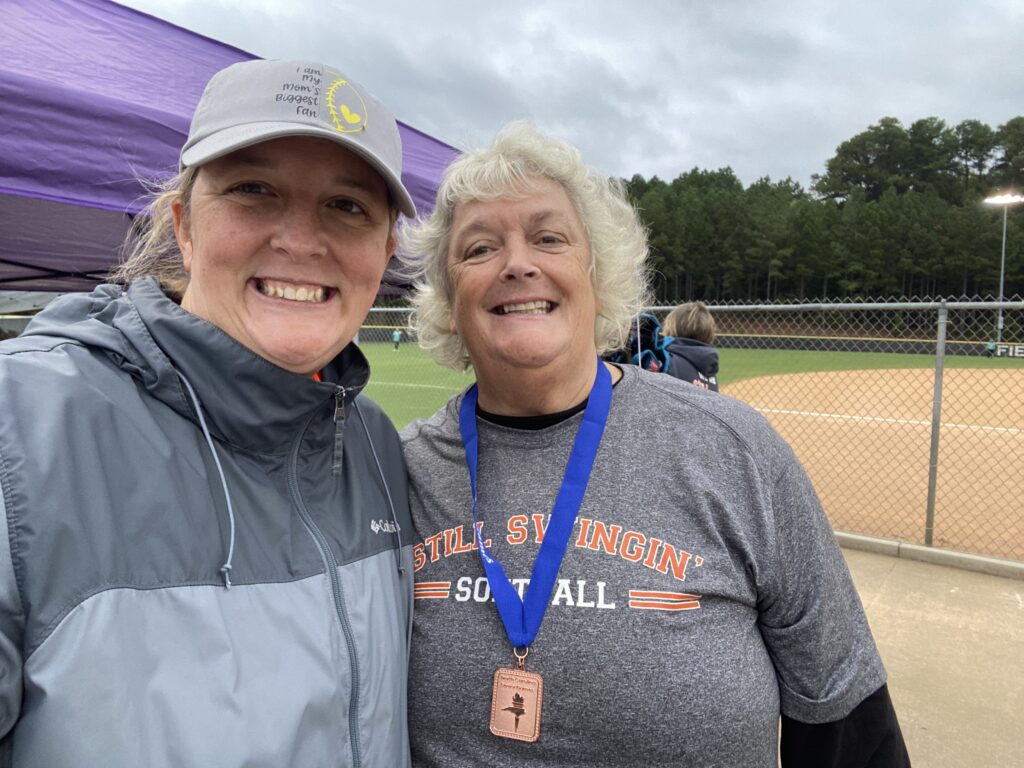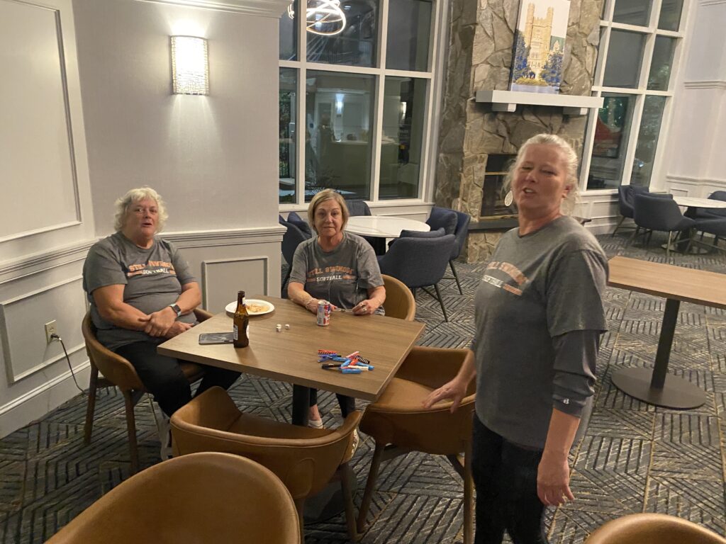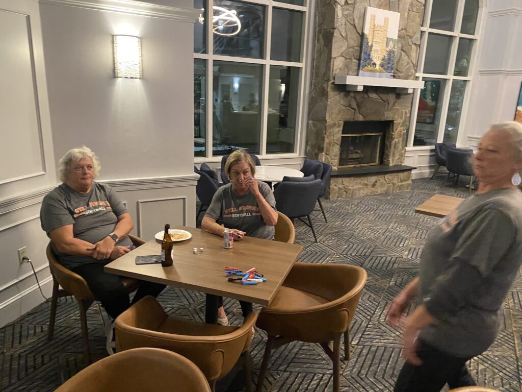 I headed to Raleigh this weekend to watch my mom and her softball team play in the NC Senior games tournament. Due to inclement weather, they chose to play all of their games on Saturday instead of spreading them out over the weekend. This is such an awesome group of ladies and I’m glad my mom is a part of the team. After the games on Saturday, we ordered pizzas and hung out in the hotel lobby and played bunco.