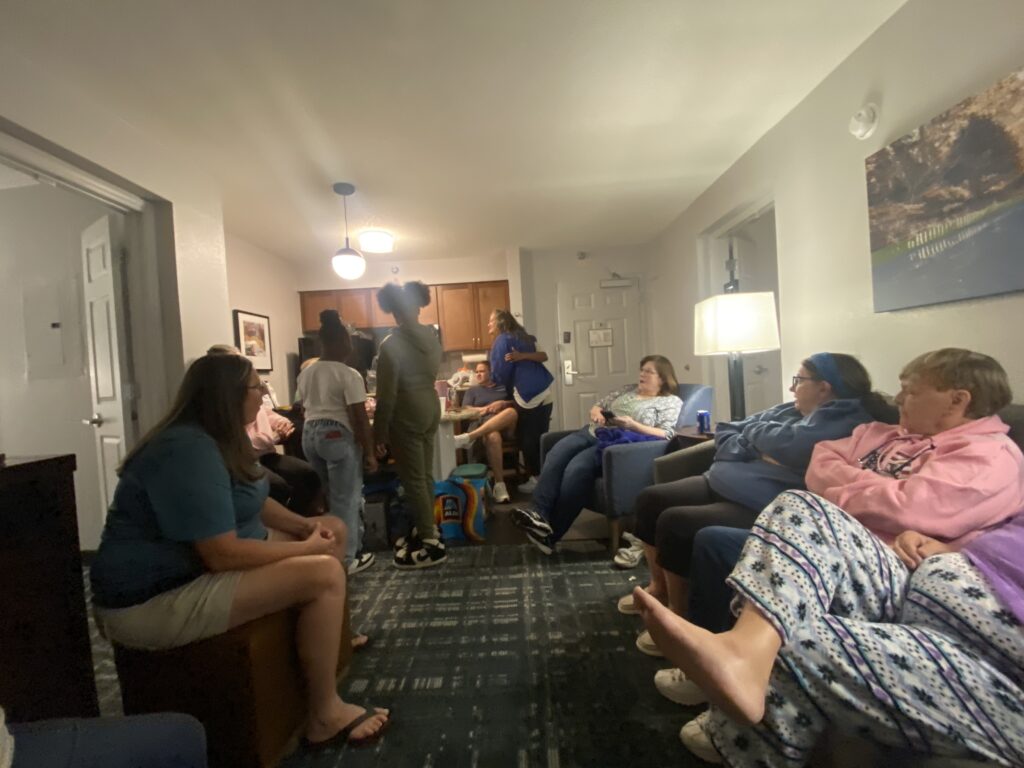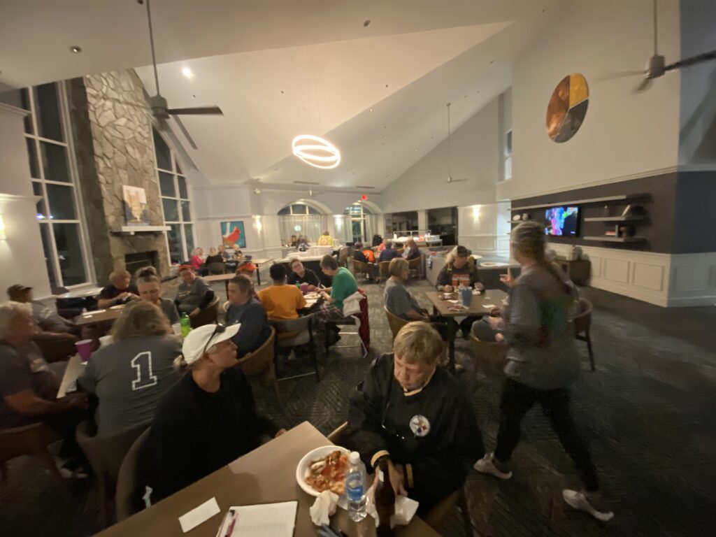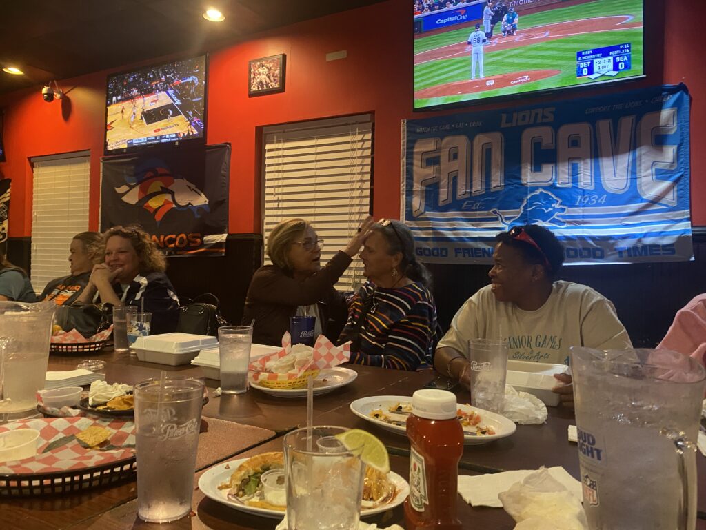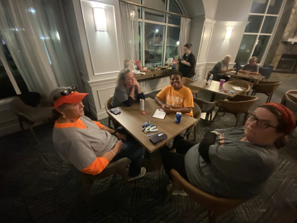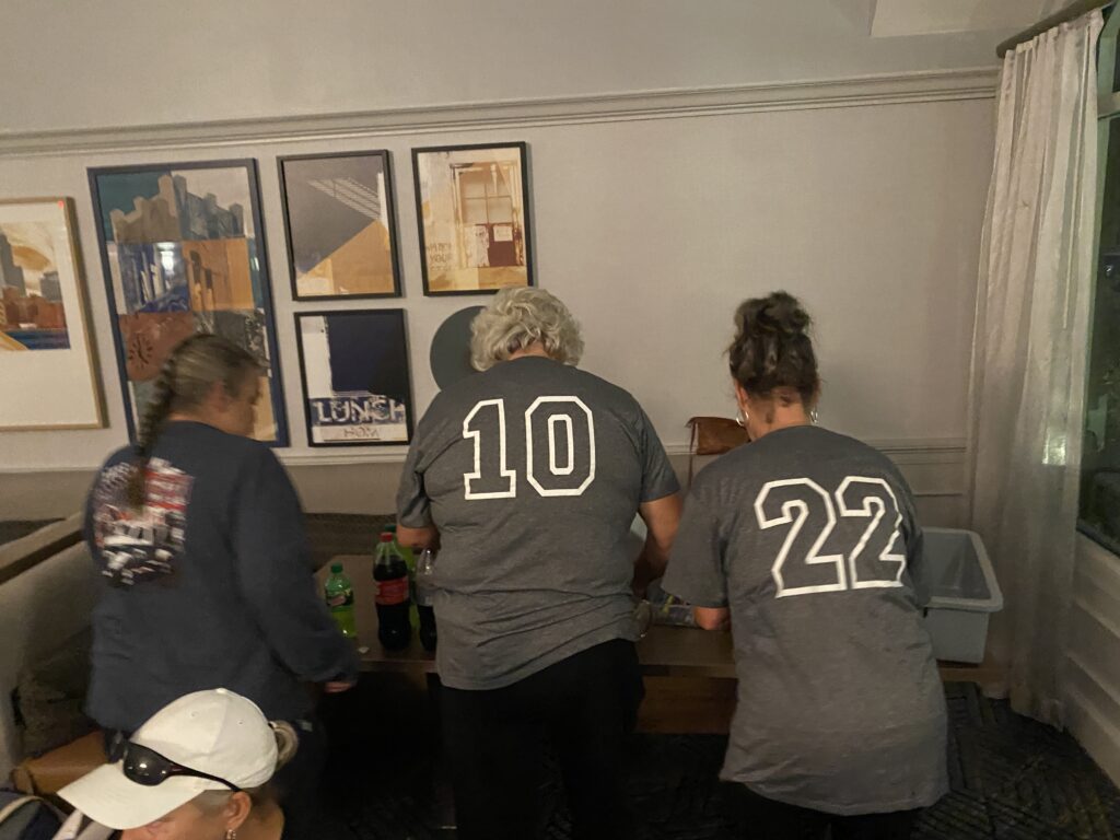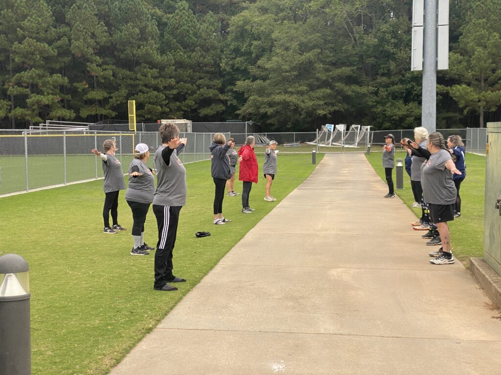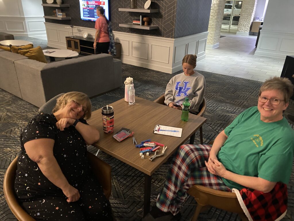 I headed to Raleigh this weekend to watch my mom and her softball team play in the NC Senior games tournament. Due to inclement weather, they chose to play all of their games on Saturday instead of spreading them out over the weekend. This is such an awesome group of ladies and I’m glad my mom is a part of the team. After the games on Saturday, we ordered pizzas and hung out in the hotel lobby and played bunco.