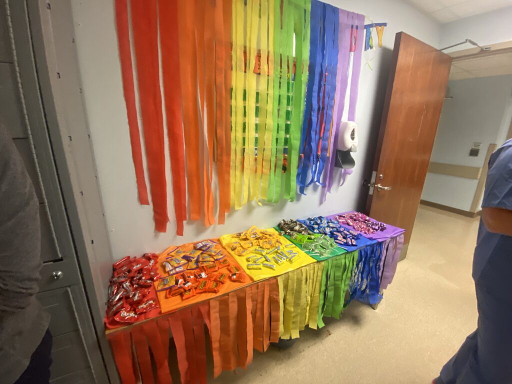This week we had the opportunity to celebrate our amazing coworkers for Sterile Processing Week. We did a rainbow theme all week and did color coordinated snacks, fruit, and candy.