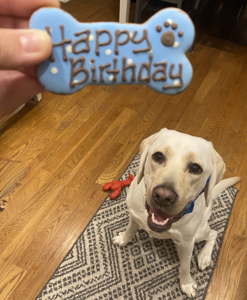 My baby boy turned 2! He is kinda in his terrible two’s right now. He is so mischievous and wants you to see him do it. He is a very entertaining pup. Loves to be cuddly on his terms. Loves being carried and enjoys a piggyback ride. His favorite thing is to be chased by either us or Anna. He will antagonize her until she goes after him. For his birthday, we got him a giant stuffed duck, a lobster nylabone, and special cookies from Unleashed. I live my handsome fella.