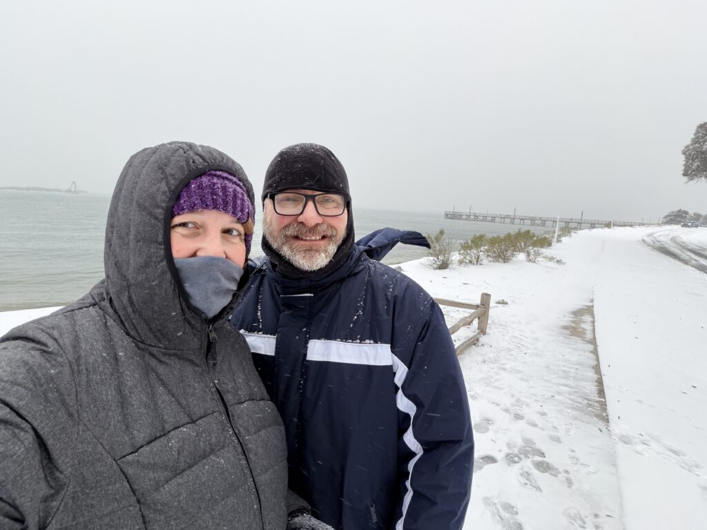 Yay for another snow day! We had a nice amount of it, only it was so light and dry, it was not good for building snowmen or making snowballs. At least when we went out early. Scott and I got up really early and went out for a walk to the waterfront so I could get pics before everyone got up and out. It was quite the workout walking all that way in that much snow. The sun came up and the snow started disappearing. It never lasts for very long here.