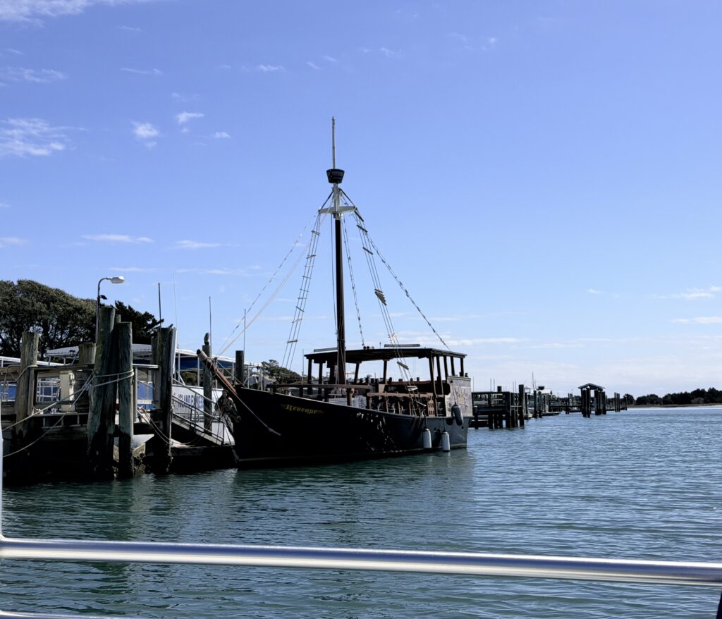 We proceeded to walk around the town. We visited a couple of shops and even ended up taking an impromptu boat ride of the waterfront. We saw some horses on one of the islands. We went to the Maritime Museum. They had some cool exhibits of items they have salvaged from Blackbeards ship. We drove to a house that is supposedly a place that Blackbeard stayed once.