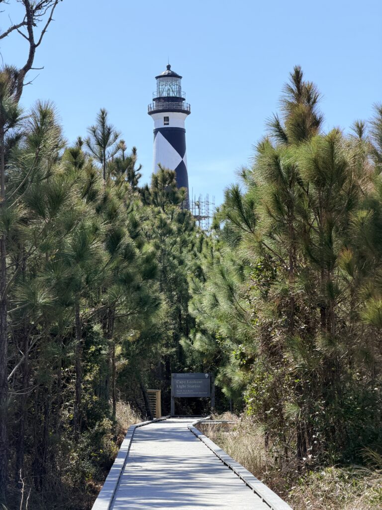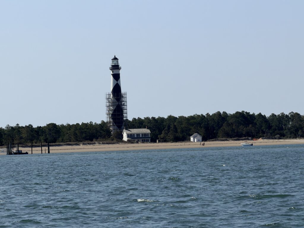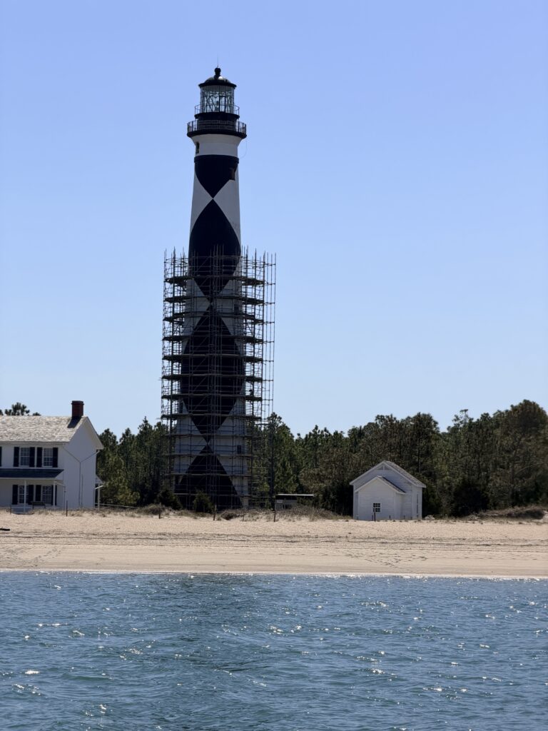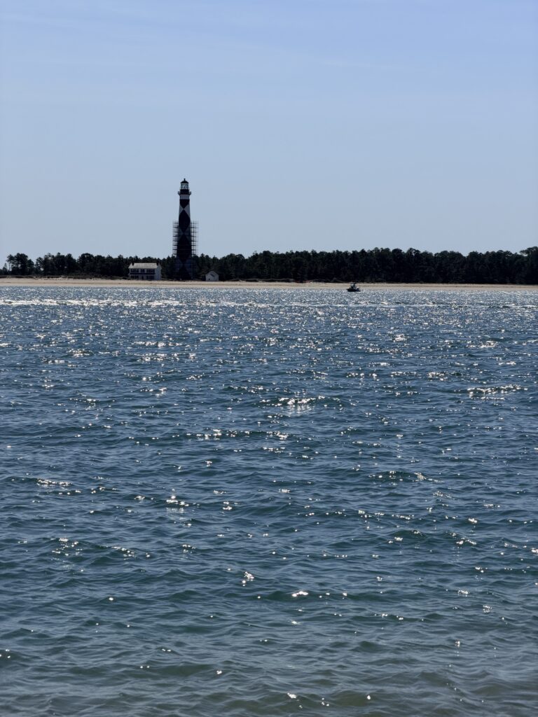 Our Ferry showed up and took us over to see the Cape Lookout Lighthouse. After seeing this one, there is only one lighthouse left in NC that I haven’t seen. Sadly, the lighthouse is currently under construction for some safety renovations so we were unable to climb to the top. It was still very pretty to see. After hanging out for a couple of hours, we headed back to catch our ferry ride back to our car.